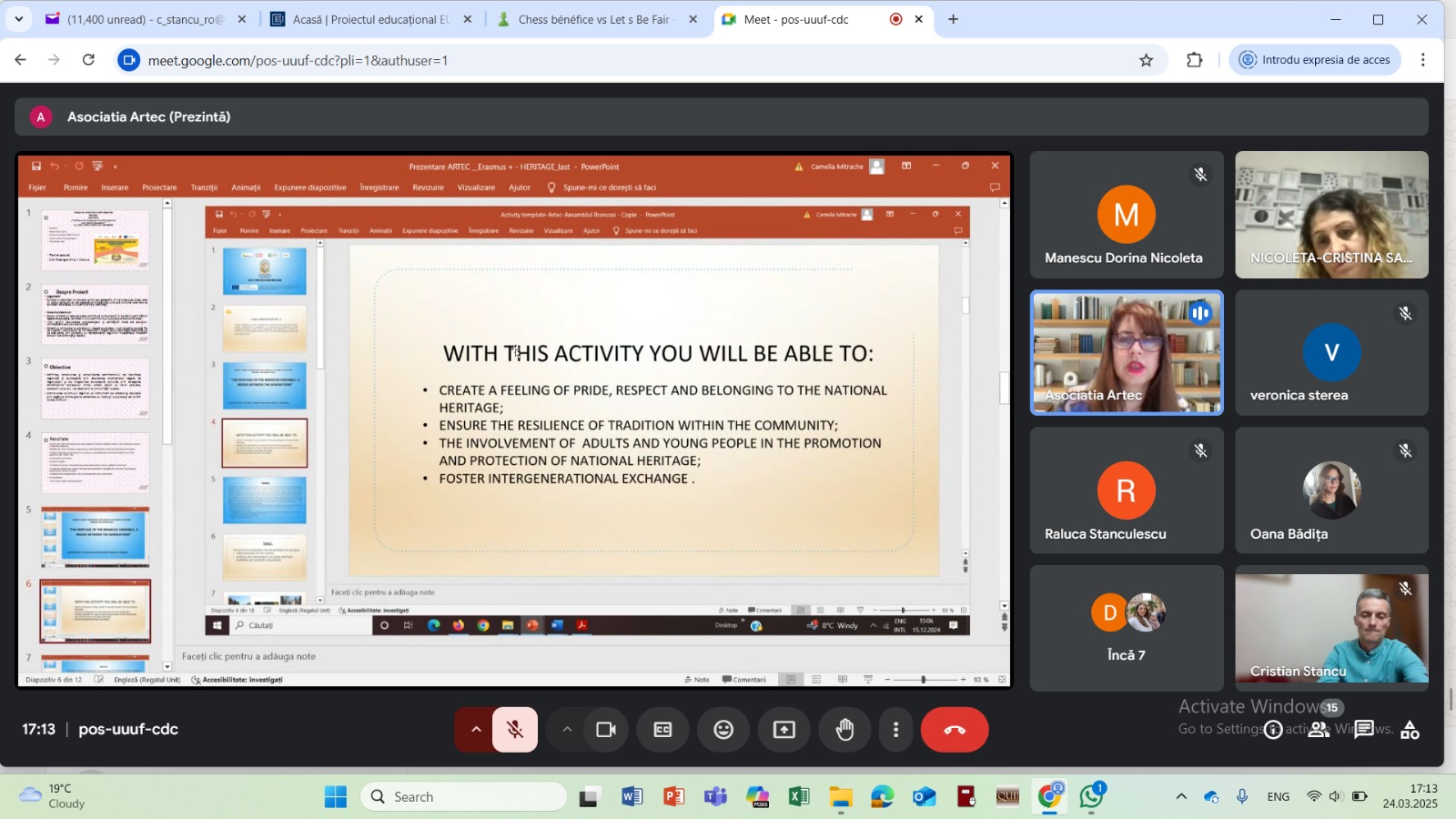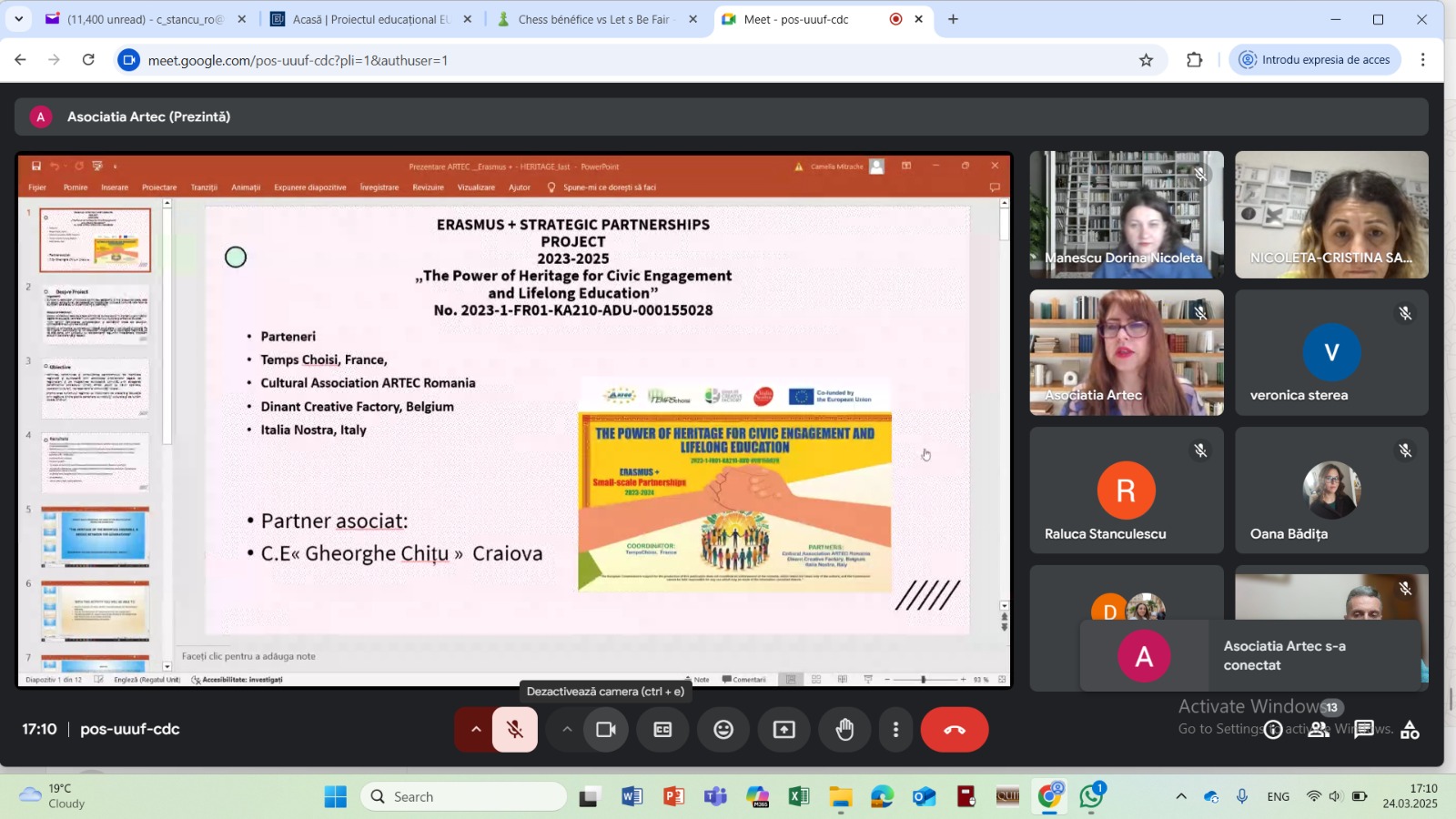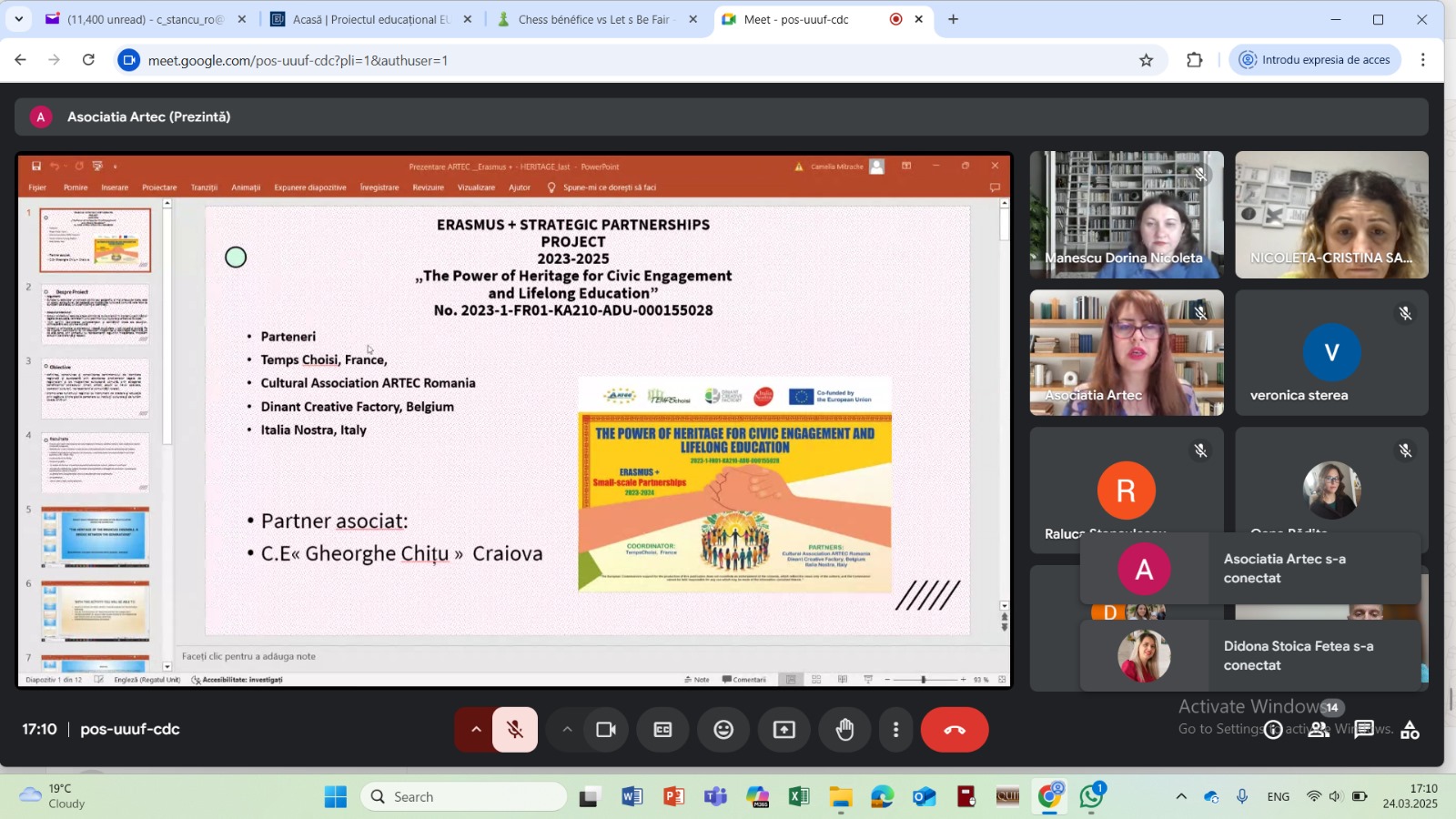 On the 24th March 2025 we held an online meeting with responsible of local cultual and social organization for the dissemination of the project and the presentation of the Faro Convention. We shared ideas and activities for the Implementation of the Convention in Romania.