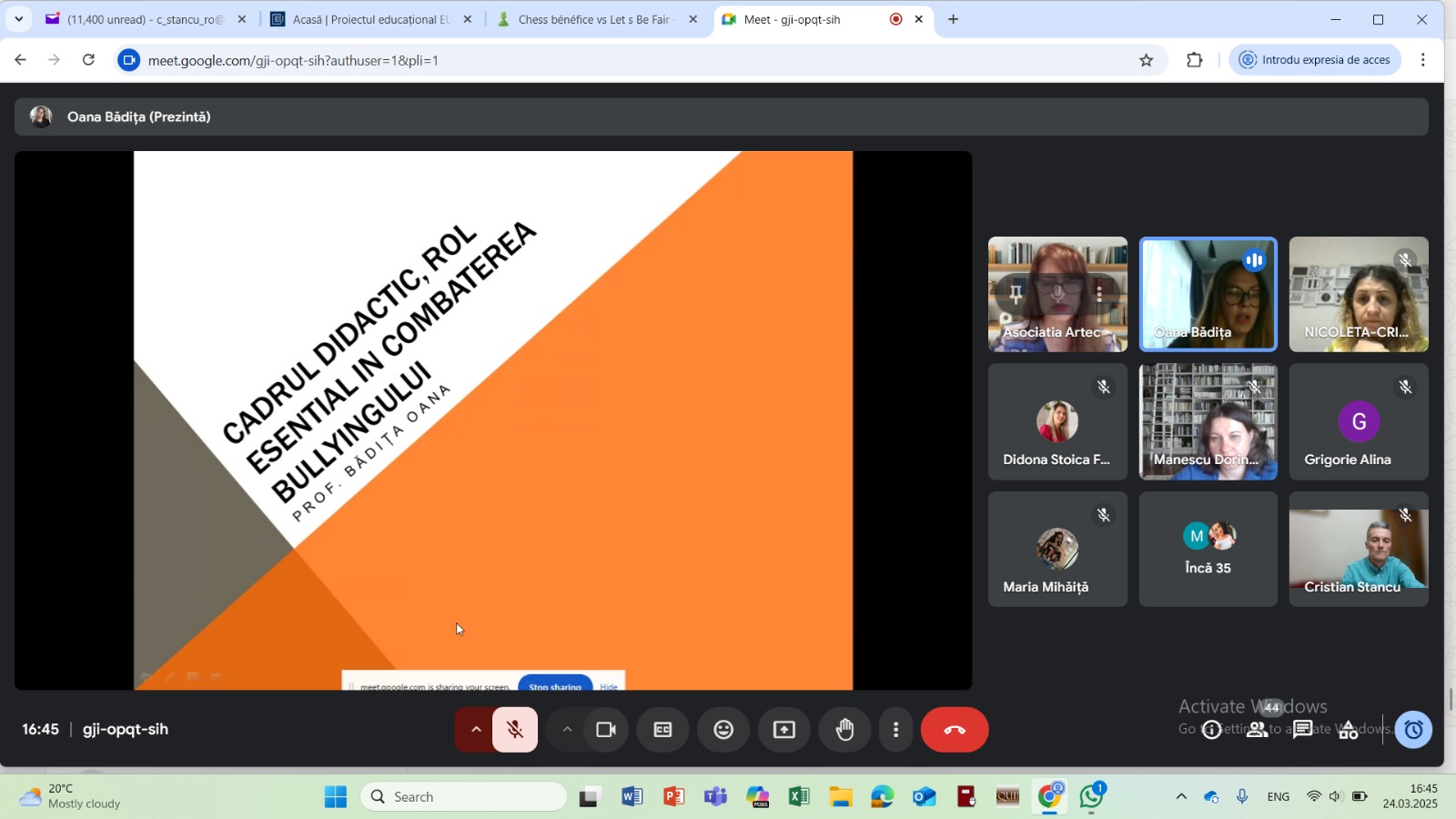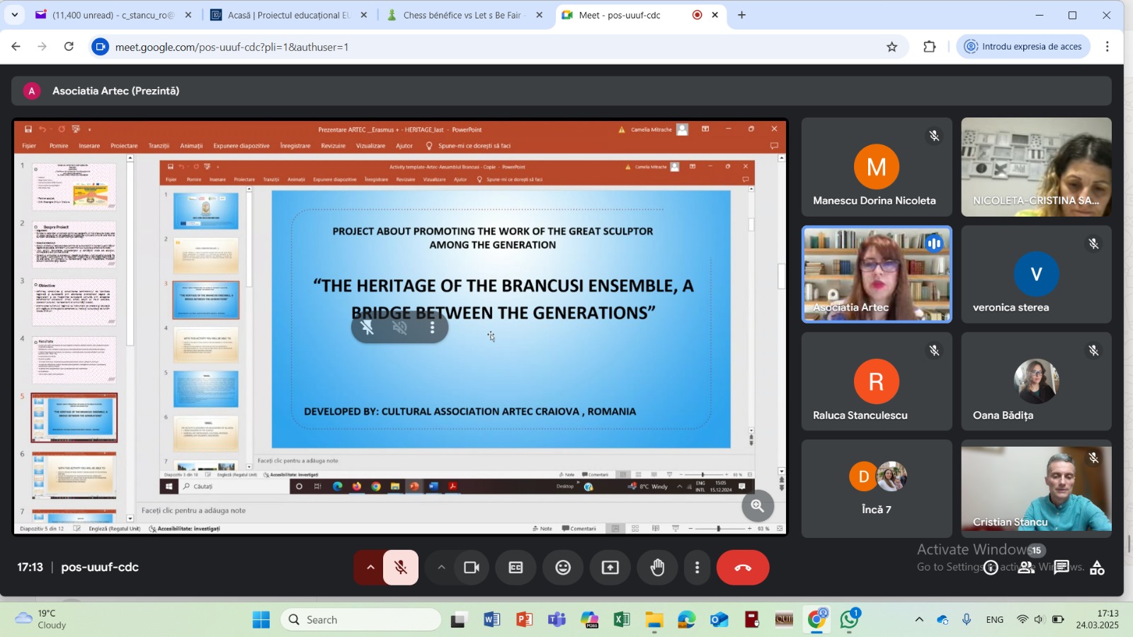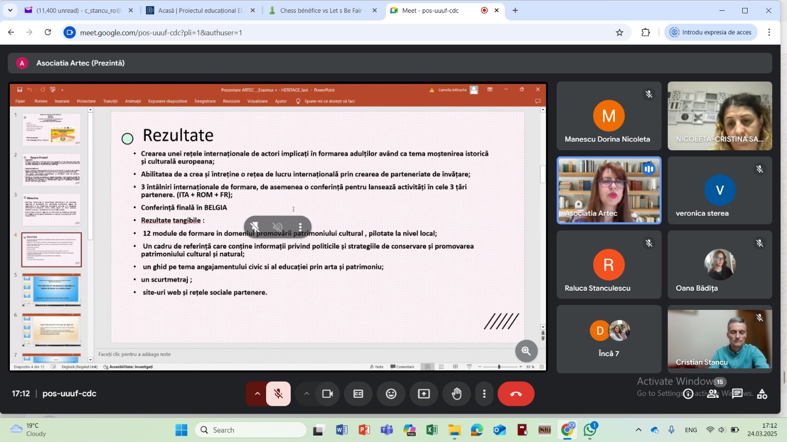 On the 24th March 2025 we held an online meeting with responsible of local cultual and social organization for the dissemination of the project and the presentation of the Faro Convention. We shared ideas and activities for the Implementation of the Convention in Romania.